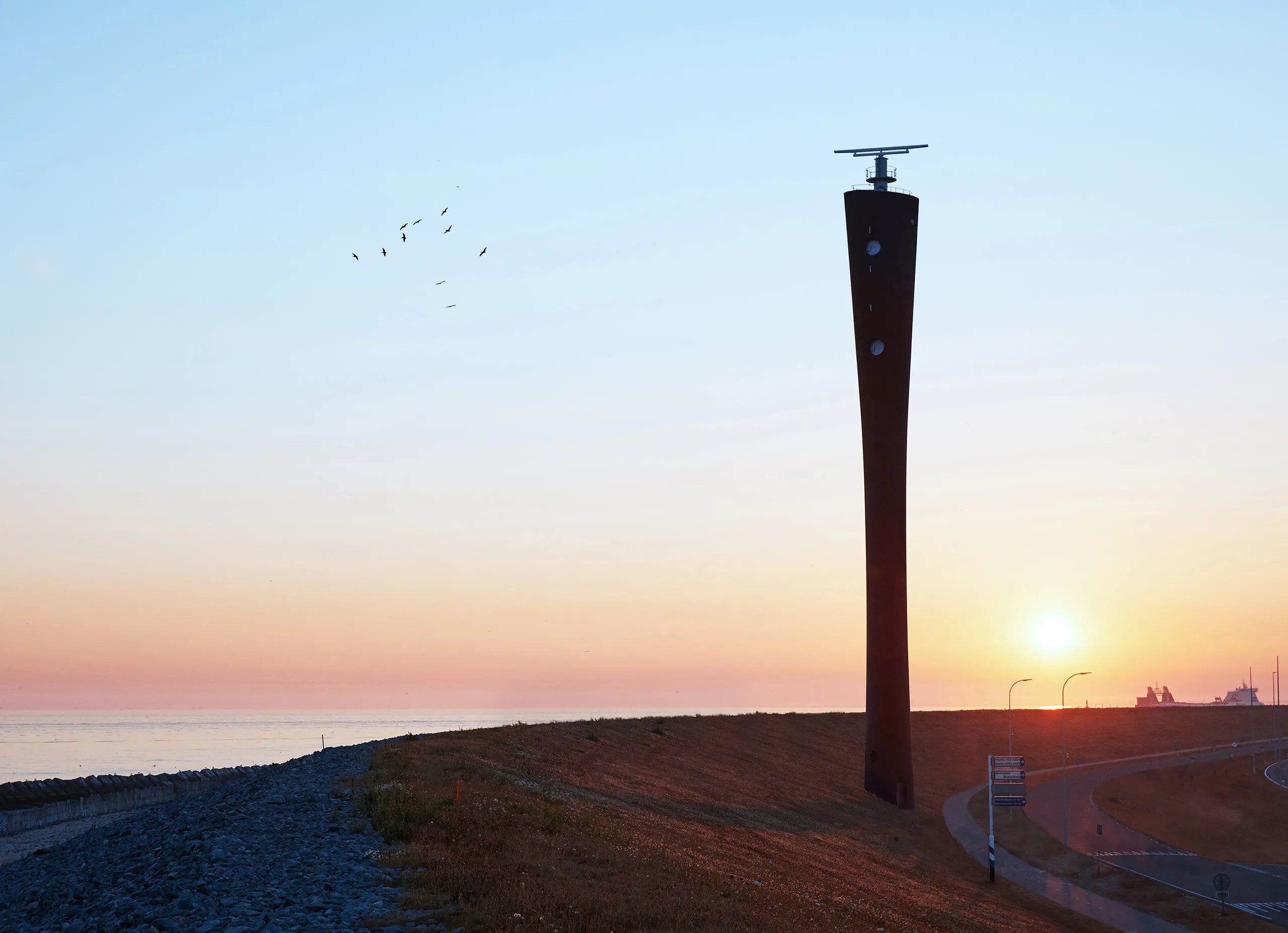 De vorm van de radartoren is een asymmetrische hyperbool. De gedraaide kop toont de enorme richting van de Nieuwe Waterweg. De toren ontstijgt hiermee zijn functionele en abstracte karakter en wordt een baken voor de Haven, ons land en het hele continent.